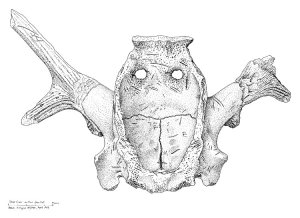 The reduction of the tines and the alteration to the inner skull surface are suggestive of these artefacts being used as head dresses. If used for hunting would they be effective and what was the purpose of the holes in the back of the skull? Whilst mostly there are two holes, that look like eyes, some skulls have three holes…….